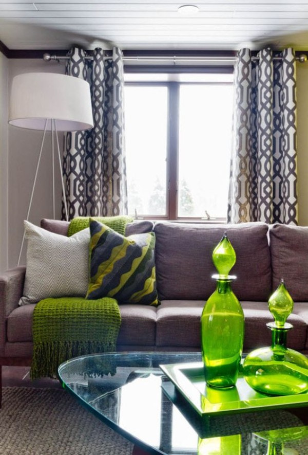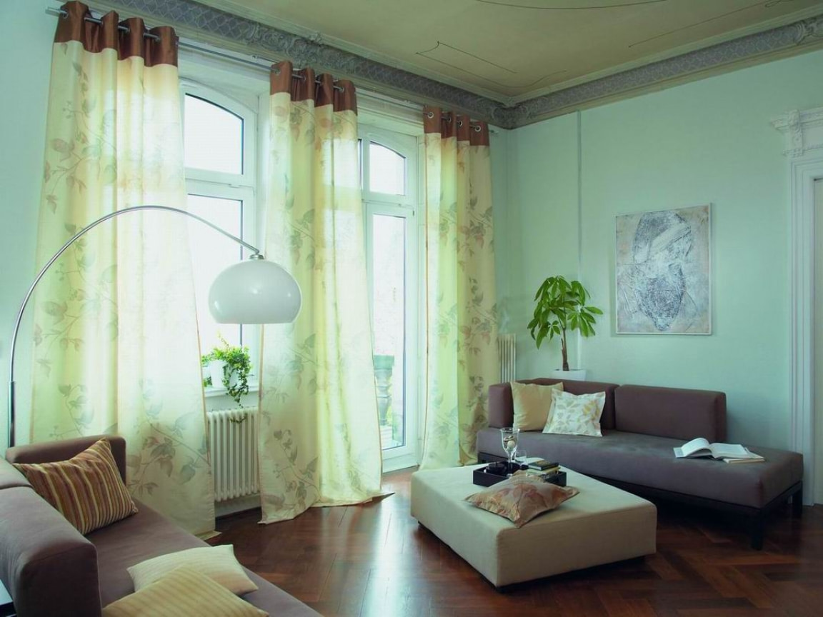 Long curtains will brighten the living room and create a stunning visual effect with graceful and neat folds. Bright and rich colors of curtains are suitable for a living room in a modern style. It is better to match the eyelets to the color of the decor elements in order to maintain the harmony of color.