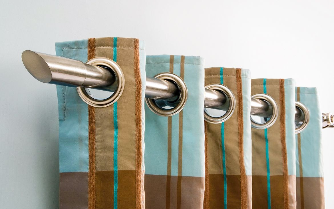 In the photo there is a cornice with a curtain on metal eyelets.