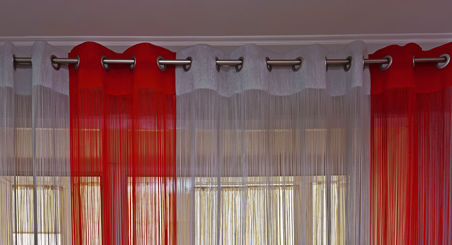 Thread curtains on eyelets