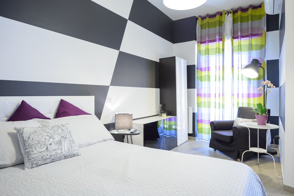 - Vertical striped prints raise the ceiling and make the room taller, while horizontal cross stripes make it wider and significantly increase the space.