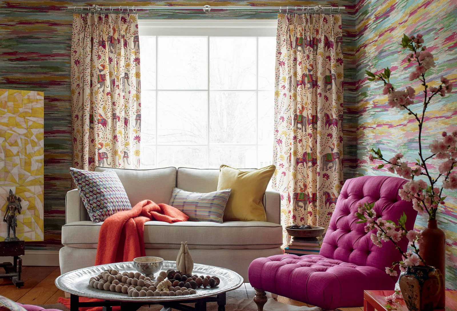 Gives the room energy and personality. Curtains with painted, embroidered or watercolor designs of flowers give warmth and comfort.