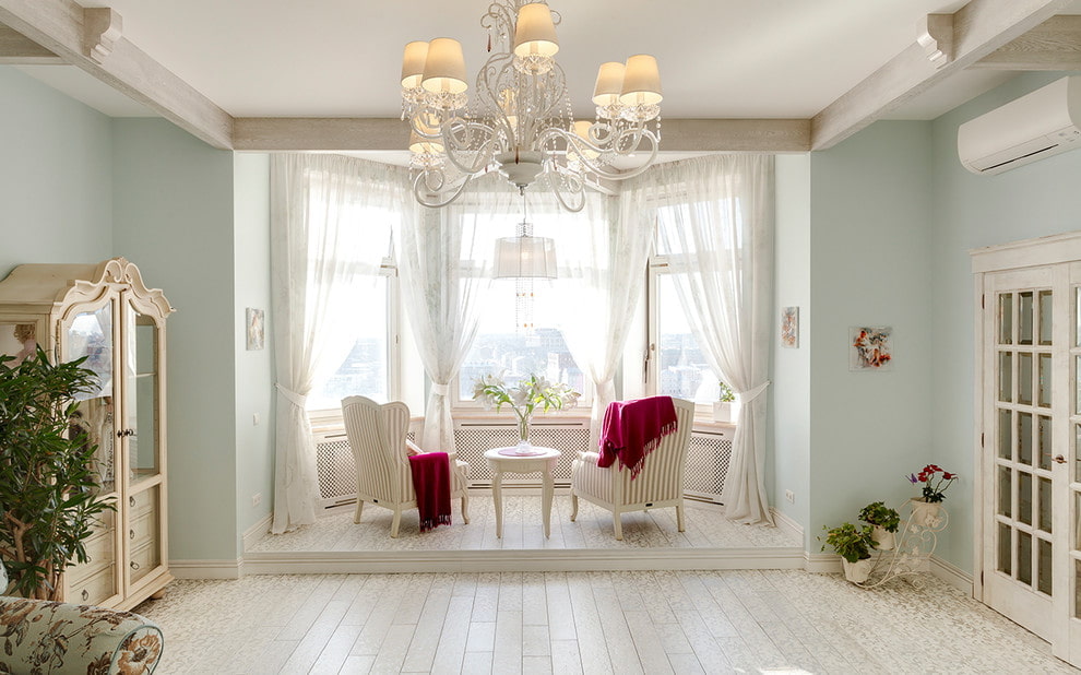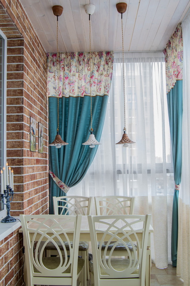 Rolled structures or air curtains with a small decor will perfectly fit into the interior of the balcony and highlight the characteristic features of the Provence style.