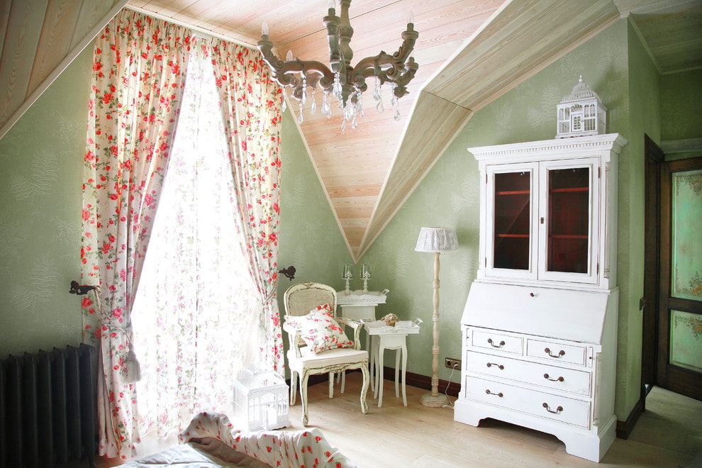 Long canvases to the floor with a not too bright pattern will perfectly complement the Provence style in the interior of the bedroom.