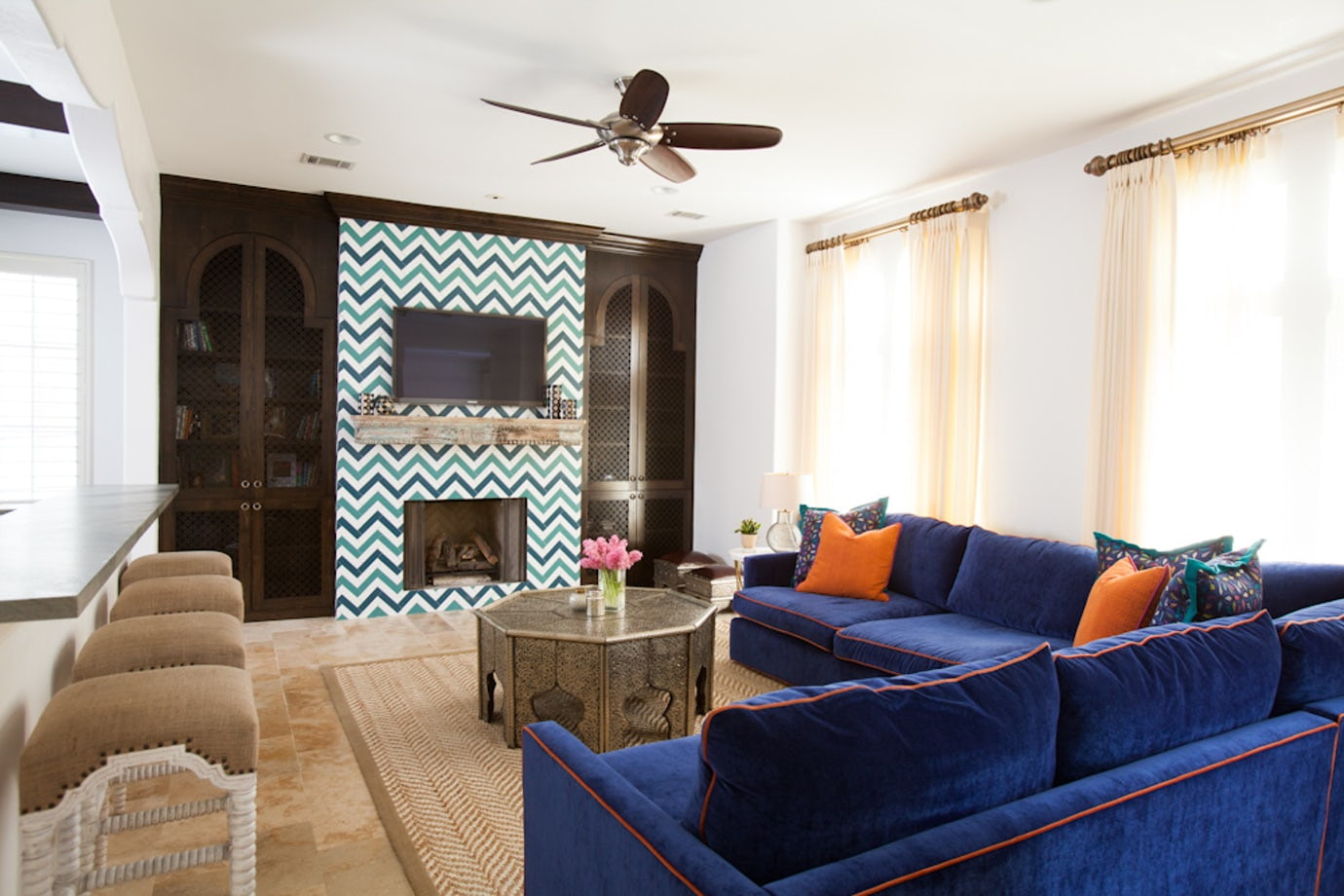 A rug in white, gray or beige will create the perfect backdrop and allow deep blues to unfold in new ways.