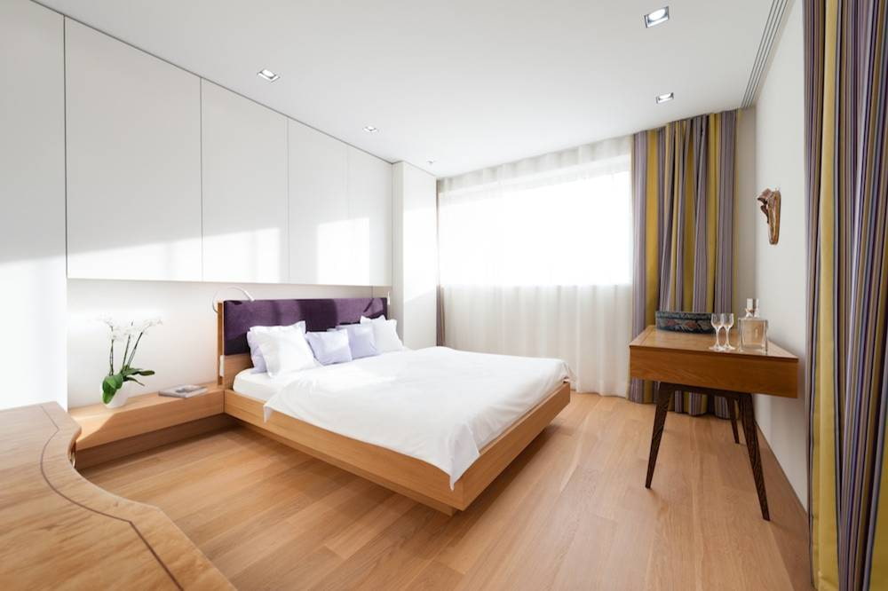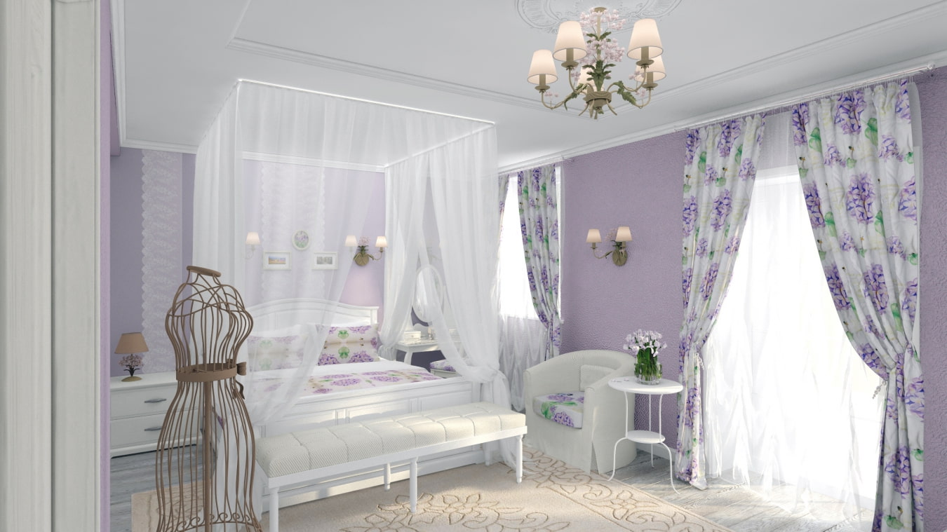 Lilac canvases made of dense materials that do not transmit light, look in this room in a special harmonious way and set you up for relaxation. You can add lilac bedspreads or pillows to the overall decor of the room.
