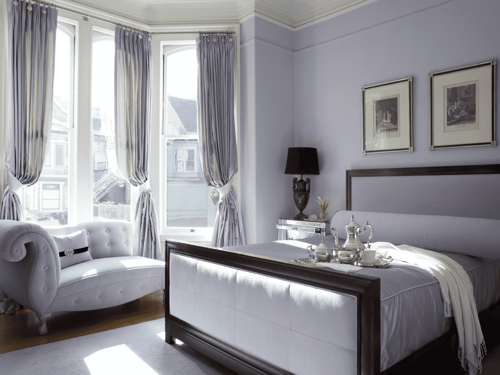 Calm and relaxing tandem. In the interior of the bedroom, the combination of lilac and brown will emphasize all the mystery of the atmosphere and create a mystical atmosphere.