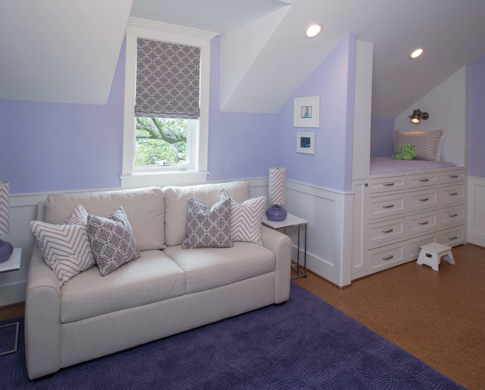 Thanks to the pale lilac shades, the interior takes on a slightly unearthly and individual look. Adjusts to calmness and the desire to engage in meditation.