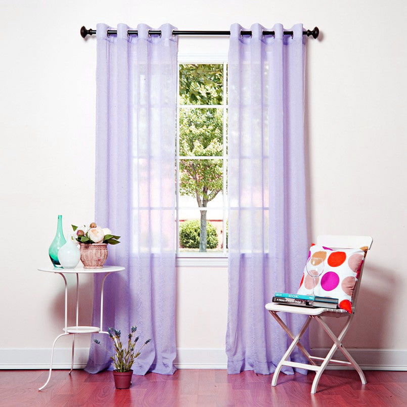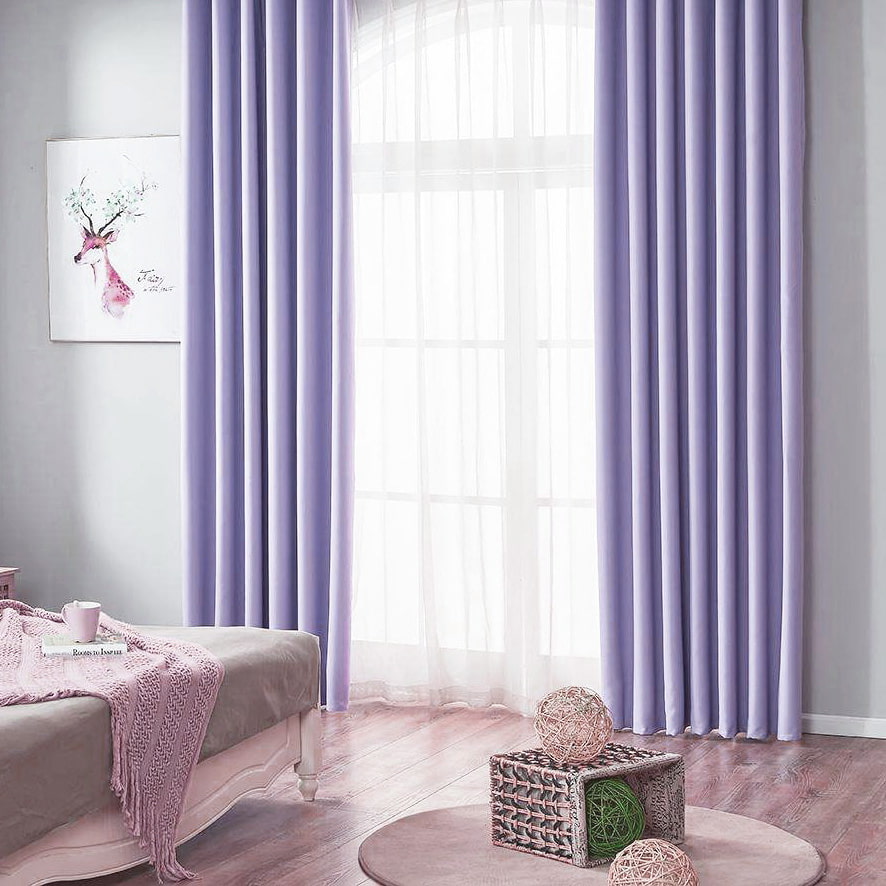 Lilac curtains favorably emphasize wall coverings in yellow, pink, blue, rich or universal beige. Walls in the same tone with curtains will also look great.