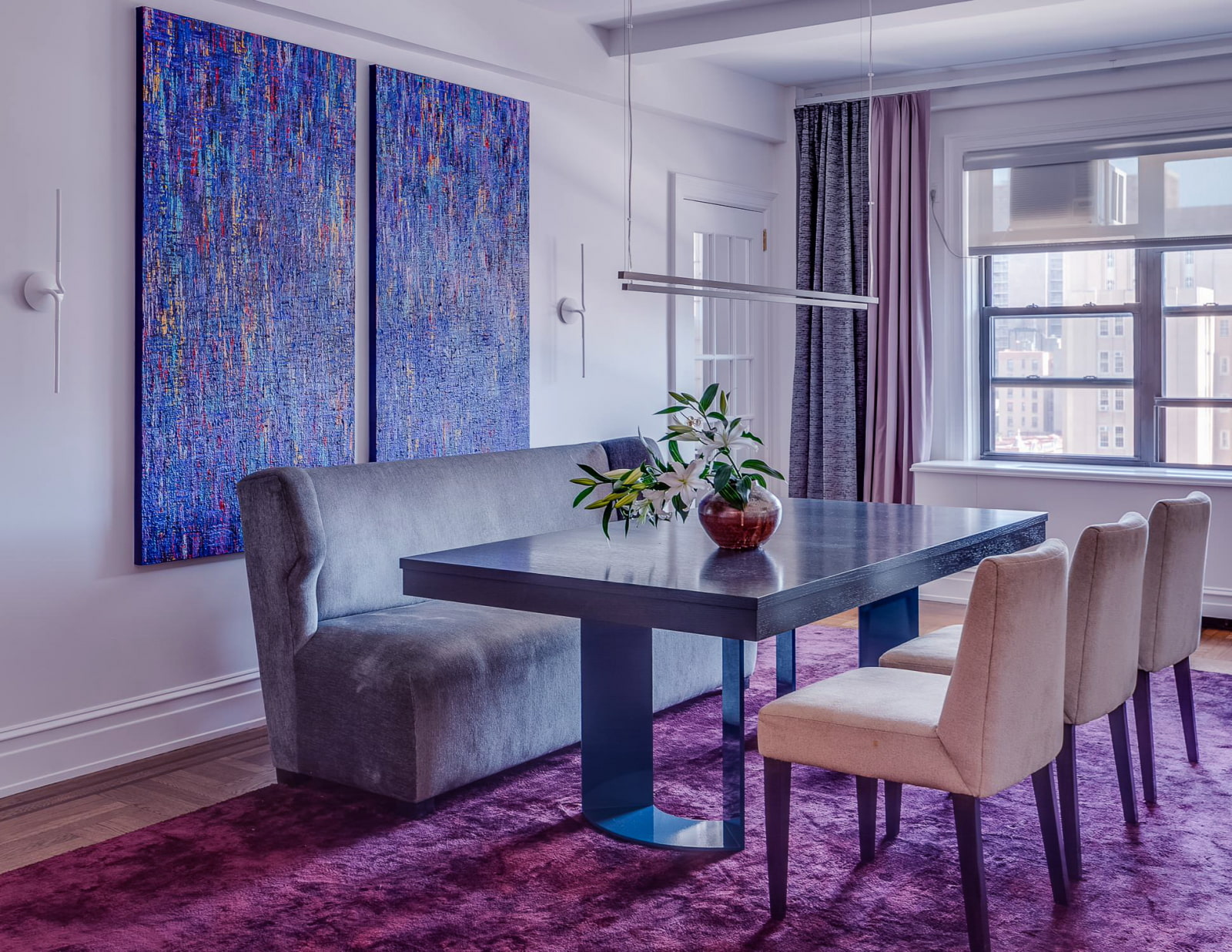 - When choosing dark shades of lilac, it is better to use a more neutral background, such shades are suitable for large and well-lit rooms.