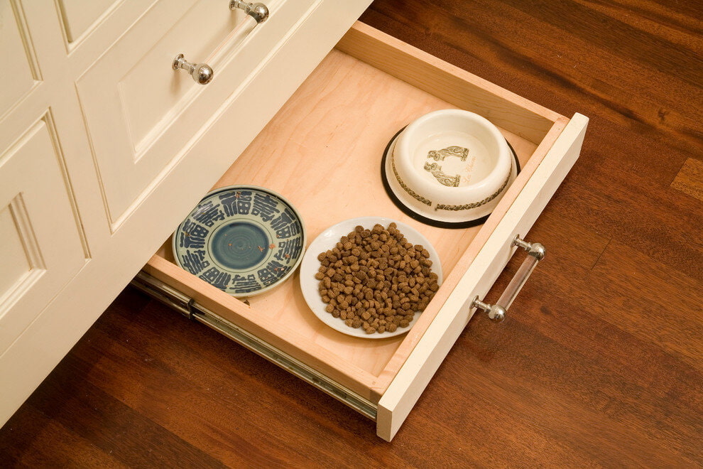 For bowls, set aside the bottom drawer of the dresser to keep your pet's dining area tidy at least occasionally.