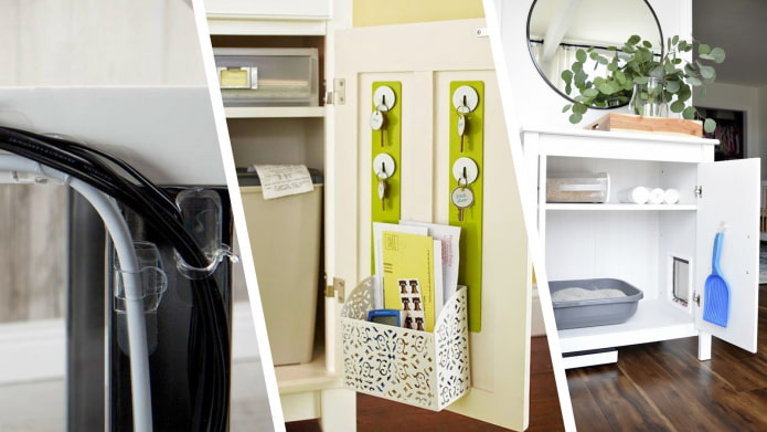 The best option is pantry or wardrobe, but if there are no separate rooms, provide a compartment in a built-in or free-standing cabinet. It can be located both in the living room and in the bathroom. Another worthy option is to use a folding mop: finding a place for it is not difficult.