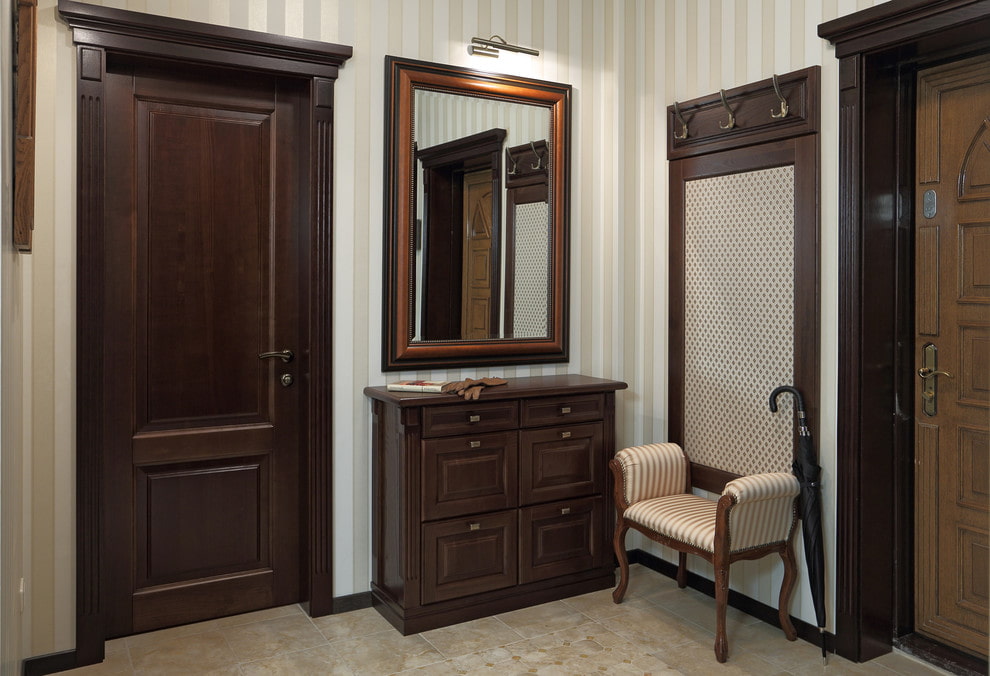 This combination is considered more strict, but at the same time quite elegant. A dark door structure against the background of a light floor covering, becomes an important element of the room and forms the desired effect of interior perception, adding sophistication and unique style to the atmosphere.