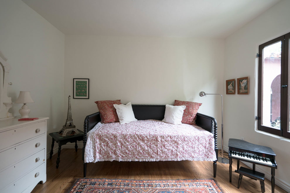Also, products with wooden armrests look very comfortable and cozy, creating a rather original and interesting design. To complement the appearance of these structures, they use decor with pillows, a blanket or a beautiful bedspread, thus it turns out to give them completeness and make them a noticeable interior element.