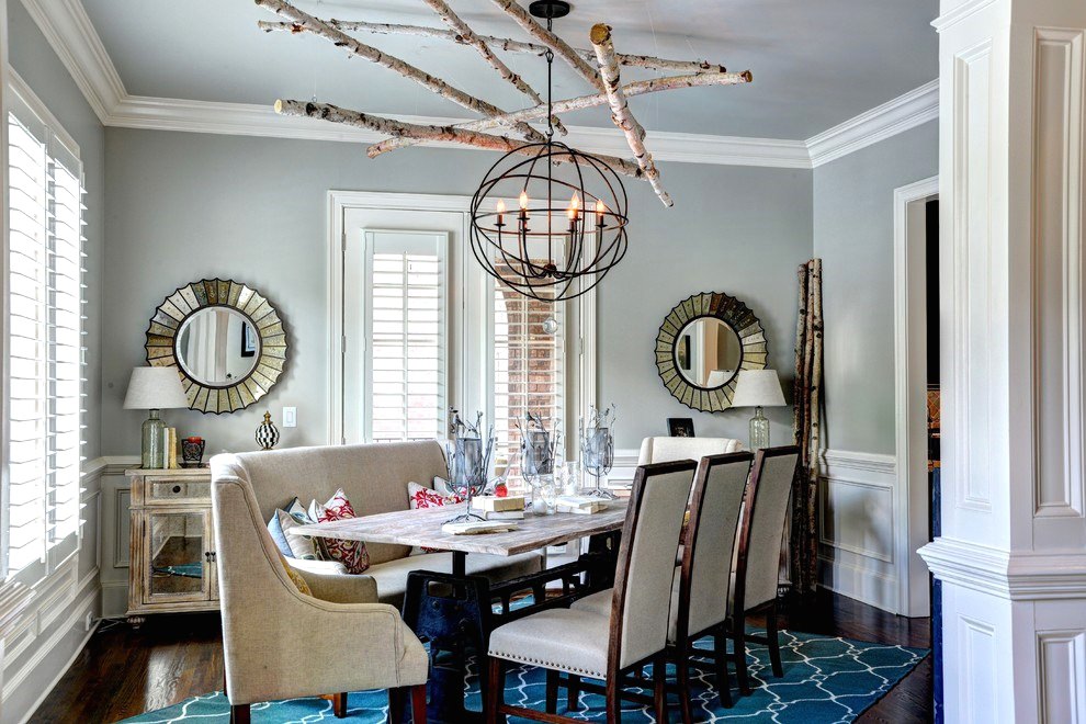 Photo 9. A chandelier made of birch branches can become the only bright decorative element in eco-style interior design.