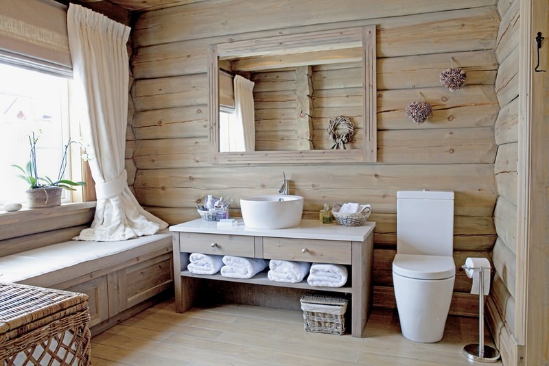 The wood finish of the bathroom and the simple shapes of the plumbing add up to a natural, eco-friendly style. Eco-style in the design of the bathroom allows the use of imitating materials. For example, porcelain stoneware tiles "imitation wood" in "wet" zones will look good, moreover, they are much more practical than wood, even treated with special compounds. The use of ceramic tiles is also encouraged, and outside wet areas - plaster, followed by painting with moisture-resistant paints.