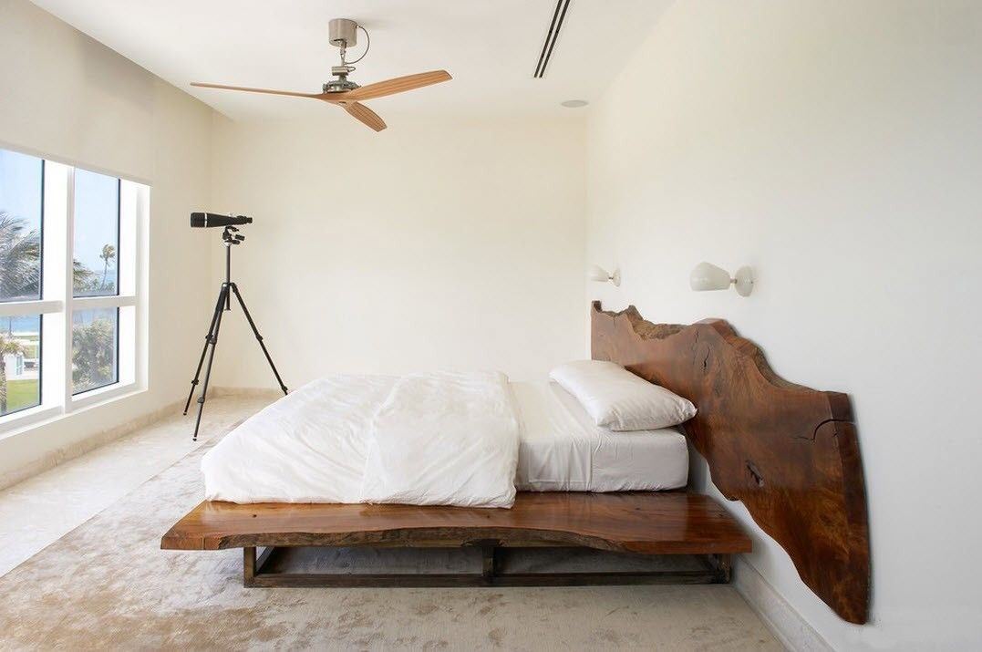Photo 1. The combination of wood, soft natural shades of gray and white, and the inclusion of space outside the window in the interior - these are the characteristic features of the eco-style of this bedroom.