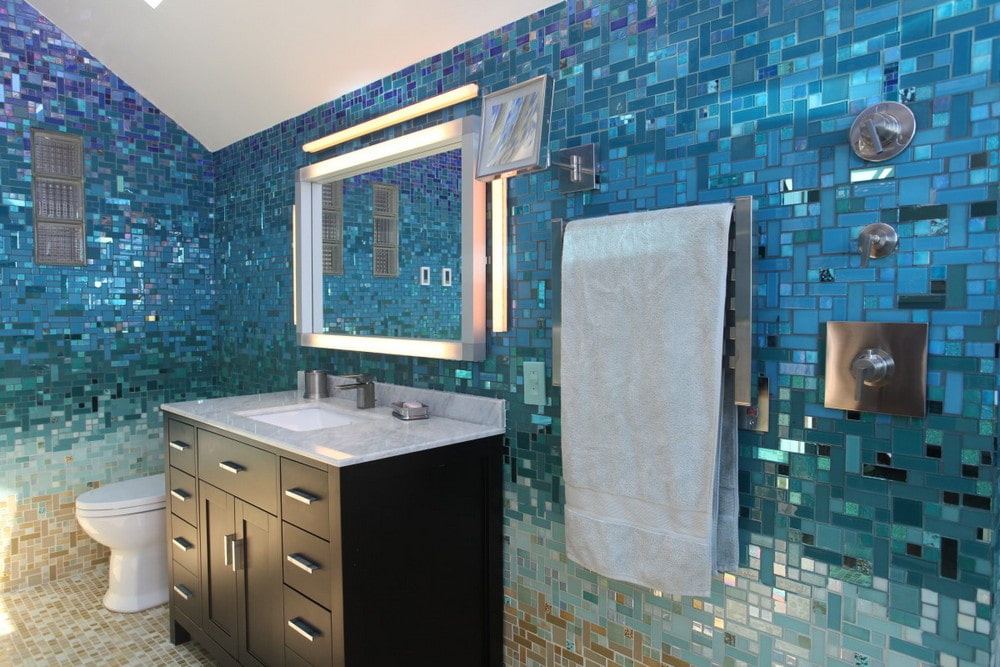 One accent wall can be distinguished with glass fragments.