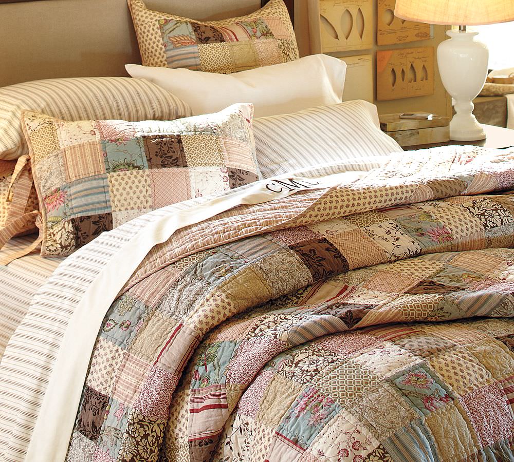 Basis and beginning of technology patchwork in the interior - fabrics. Bedspreads, curtains, pillows, tablecloths, furniture covers, curtains and curtains, rugs on the floor and panels on the walls - all this can be made from various fabric scraps, pre-assembled into a single whole.