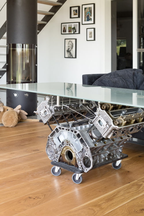Sometimes furniture is assembled from absolutely amazing things: for example, using a part of an old sewing machine as an underframe. Or an old engine.
