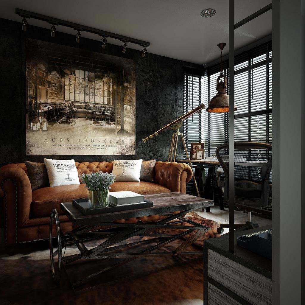 The steampunk design is extremely dark, getting into such an apartment should create the feeling of being in an old abandoned factory.
