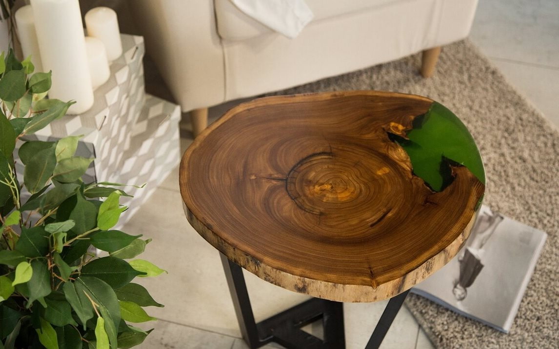Wood has many benefits and is an ideal solution for the production of epoxy resin furniture. It is a malleable material that can be shaped into any shape. Wooden blanks are durable, lightweight, and convenient to work with.But most importantly, the raw edges of the cuts are easily filled with liquid resin, creating picturesque patterns.