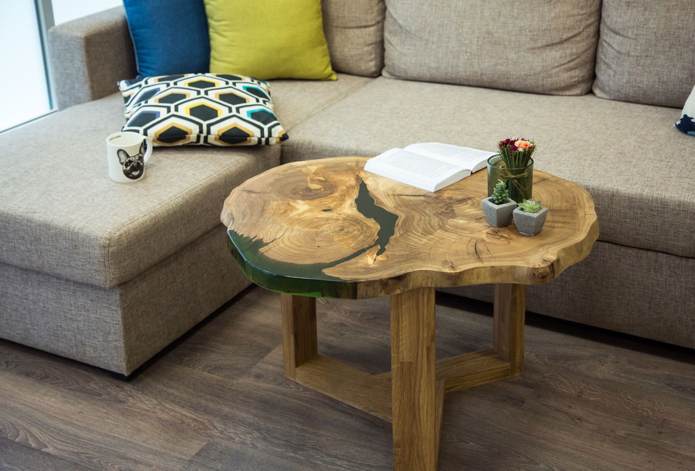 Epoxy resin wood coffee table
