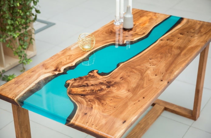 | Easy to decorate, has an aesthetic appearance and makes it possible to implement any design ideas. | Do not place hot pots and pans on the table with epoxy resin, otherwise the material will melt. |