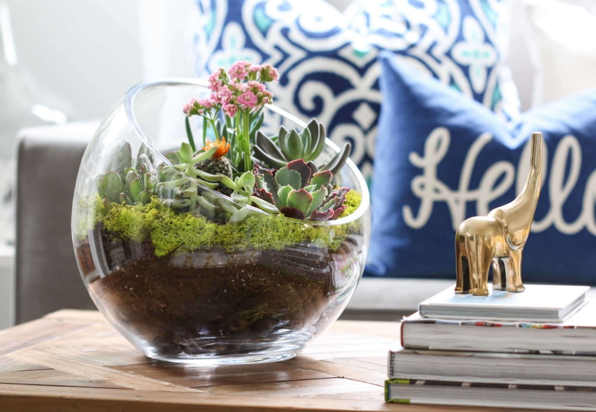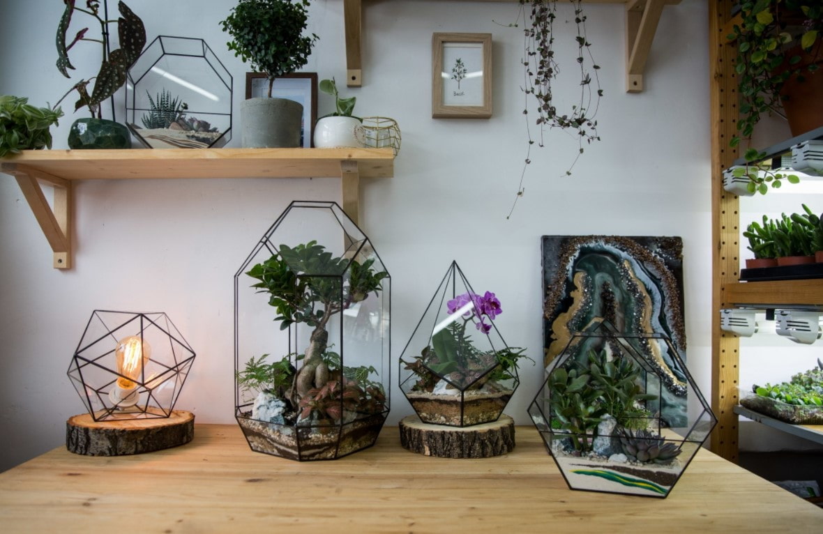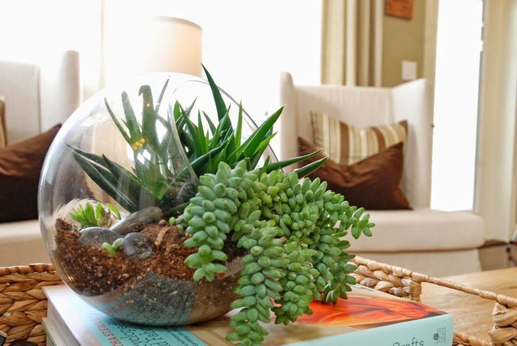 In the photo there is a decorated florarium