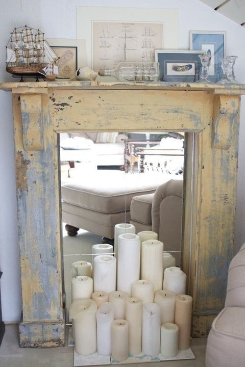 To "multiply" the number of candles in the interior, decorate the fireplace with a mirror, as in the second photo. This will make the lighting more voluminous.