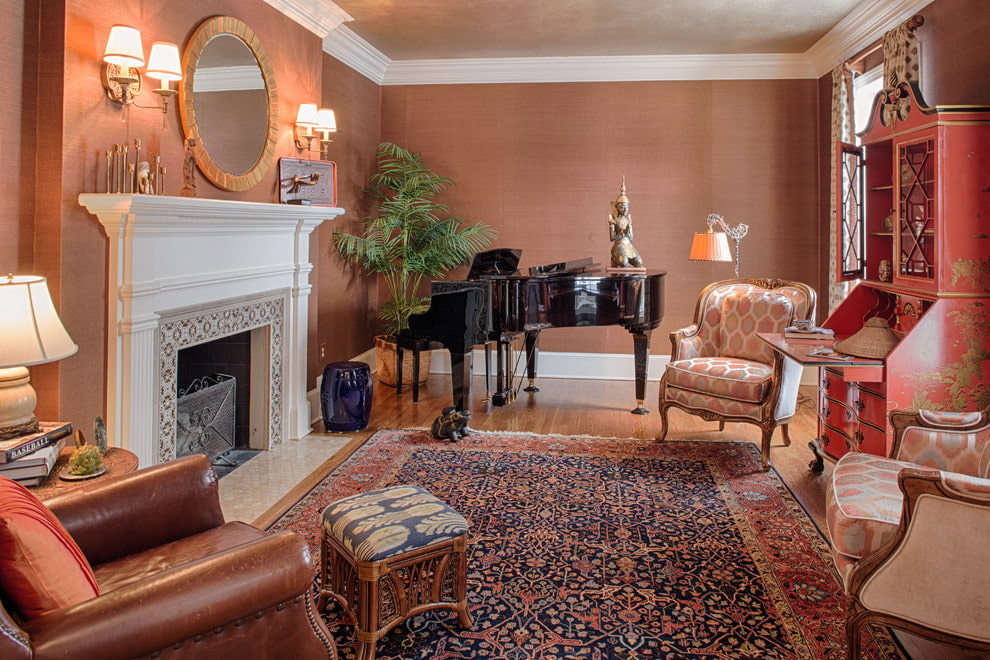Solid textile wallpapers in neutral shades or models with unobtrusive patterns and ornaments will perfectly emphasize this subtle, sophisticated and harmonious style. Jute products with companion wallpaper will add color and exoticism to the oriental interior.
