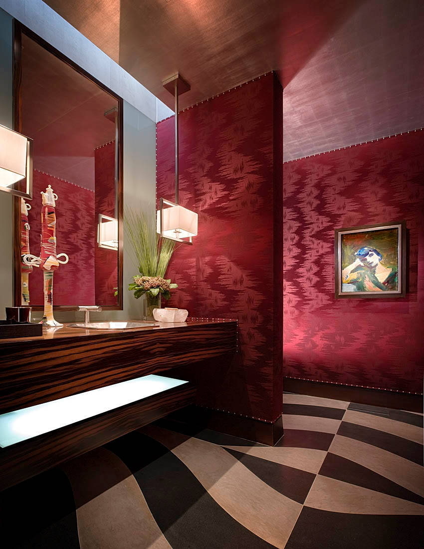 Pictured is a velor textile wall covering in the bedroom.