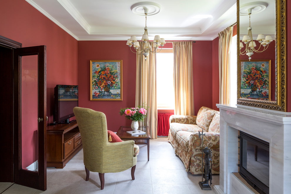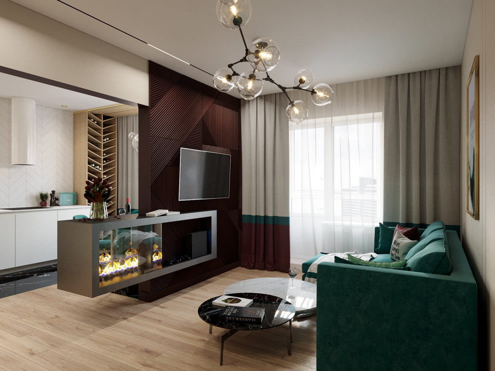 The combination of a TV with a fireplace is quite common in the living room. This tandem allows you to fill the room with special comfort and contribute to a pleasant and quiet evening with your family or friends.