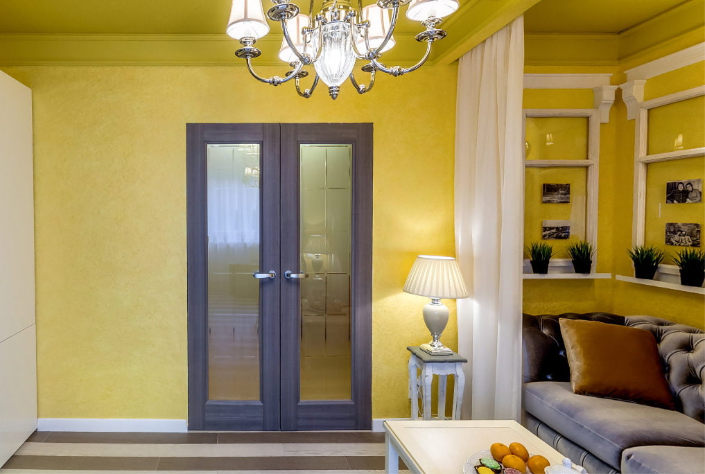 To visually increase the space of the apartment and more lighting, doors with glass are suitable, which can be transparent, frosted or dark, depending on the room.