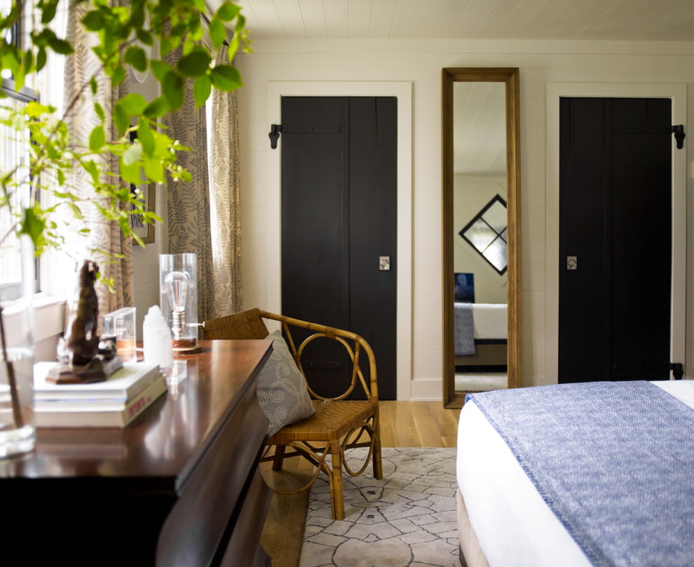 Dark doors are suitable for Scandinavian and modern bedroom interiors. If the interior is of dark shades, then it is better to choose light furniture in order not to overload the space.