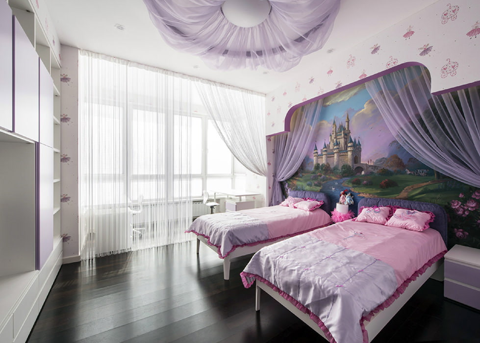 This is a comfort zone for the child, the floor in the nursery should be relatively soft, non-slip and resistant to moisture. Lacquered parquet, moisture resistant laminate, carpet or carpet on a wooden floor will do. It is better to choose a color or brown shade for the flooring.