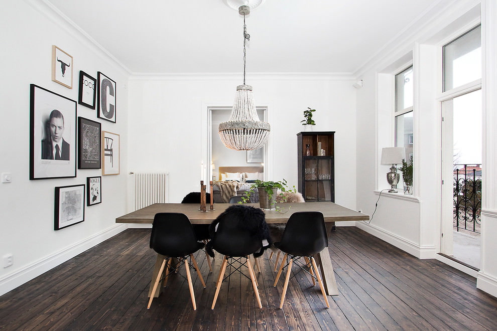 An interior with a dark floor looks elegant and presentable, depending on the material and quality of the floor covering, it suits any style, a dark brown floor will decorate a room in a classic English style, and a dark gray floor is suitable for country and loft styles.