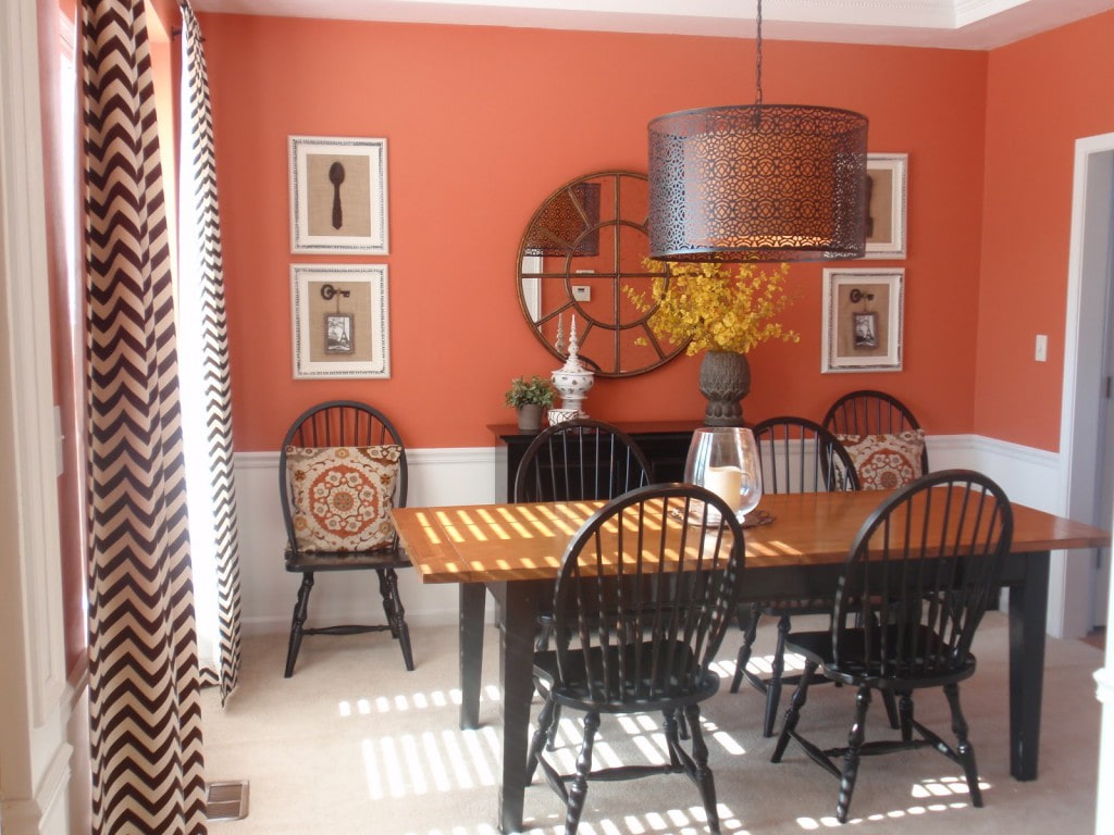 Cabinet furniture, of course, can also be brick-colored. But since this tone is accent, buying a whole orange set is not worth it (the exception is the terracotta kitchen). A sideboard or chest of drawers is enough in the living room or hallway, and a sideboard in the dining room.