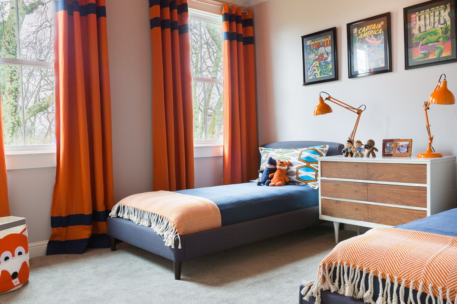 A nursery in terracotta color is not the most popular solution. However, this shade combines the positivity of orange and the energy of red - which means it is suitable for inactive melancholic children. Terracotta energizes, gives strength, stimulates creativity.