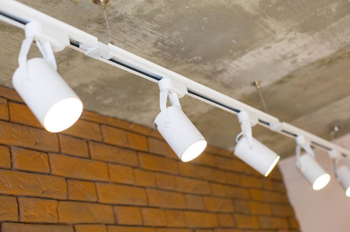 Tire or track light - a design involving the fastening of individual light sources on a special busbar. At the same time, the lamps can be positioned anywhere on the base, which opens up a lot of possibilities for adjusting the directional glow.