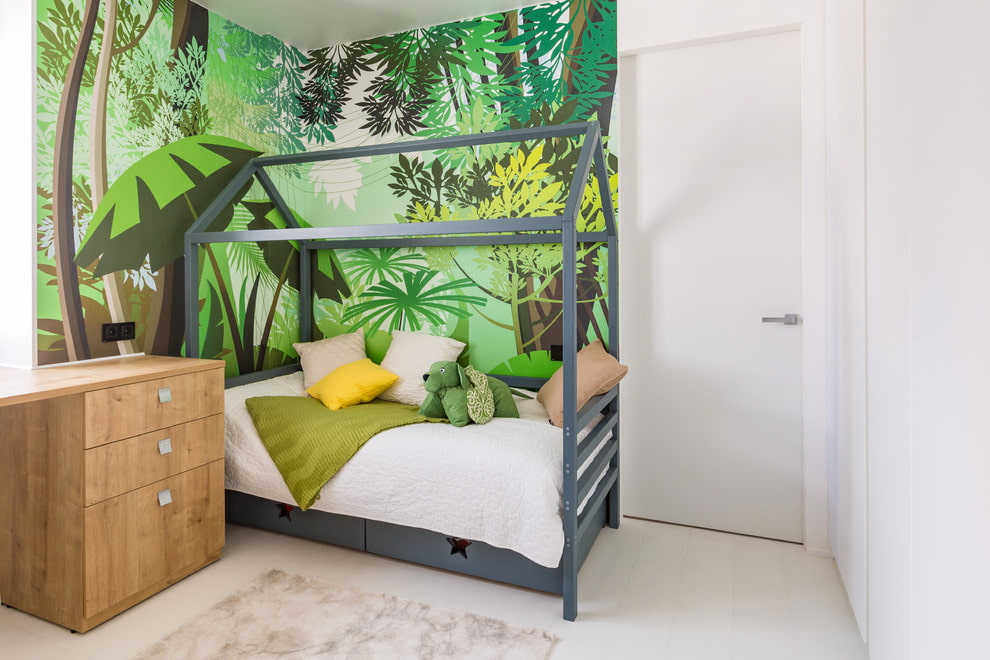In the photo there is a children's room and a white interior door with a matte surface.