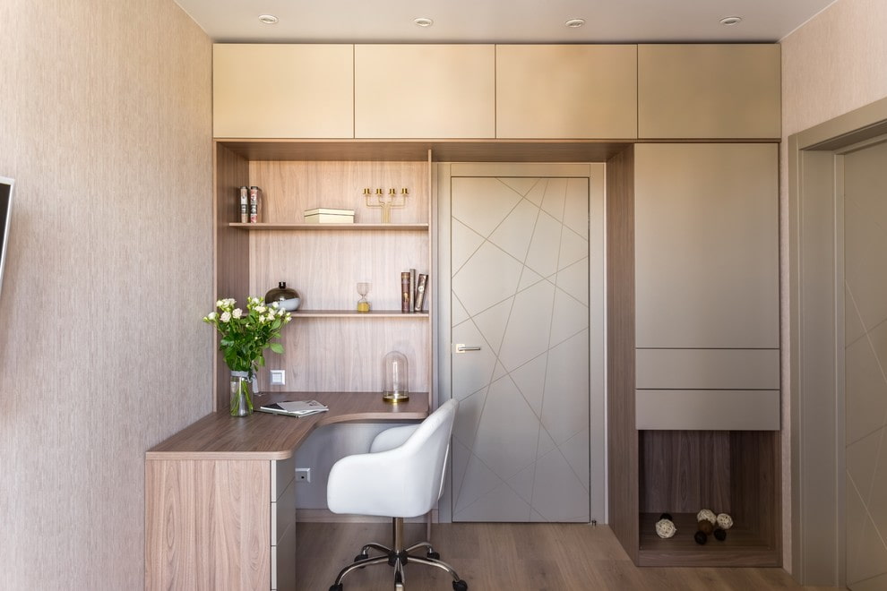 Quite often, the door is matched to a color or a couple of tones darker or lighter than large pieces of furniture, such as a kitchen set, cabinet, rack or other items. In the bedroom, the interior door leaf can be combined with a headboard, bedside tables or a chest of drawers.