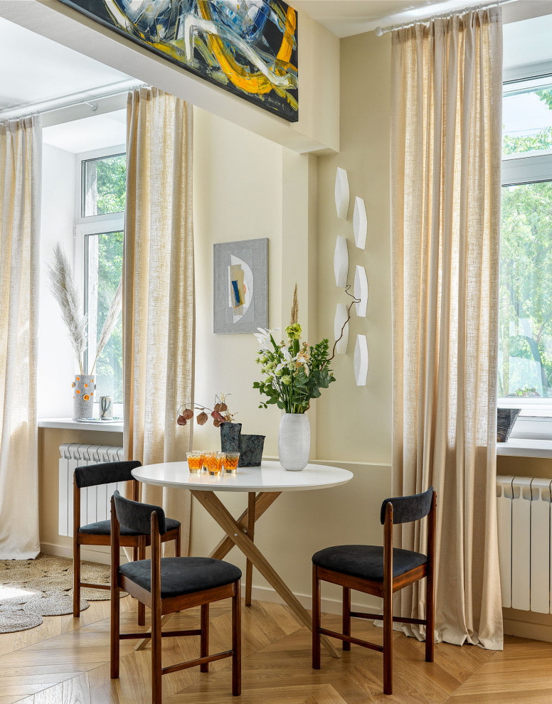 It is considered a great backdrop for bright details, especially green, amber and metallic - in combination with earthy beige, they begin to play with new colors. Pertinent for decorating an apartment in an eco-style and contemporary.