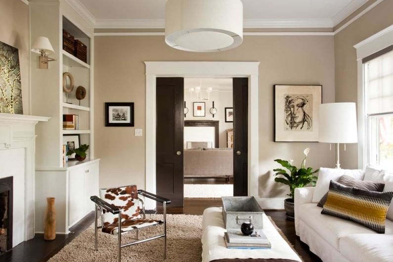 - Another option for combining floor and doors according to the dark-light principle involves painting the walls in light colors. This works especially well if the room is not too high. This color combination will visually "raise" the ceiling.