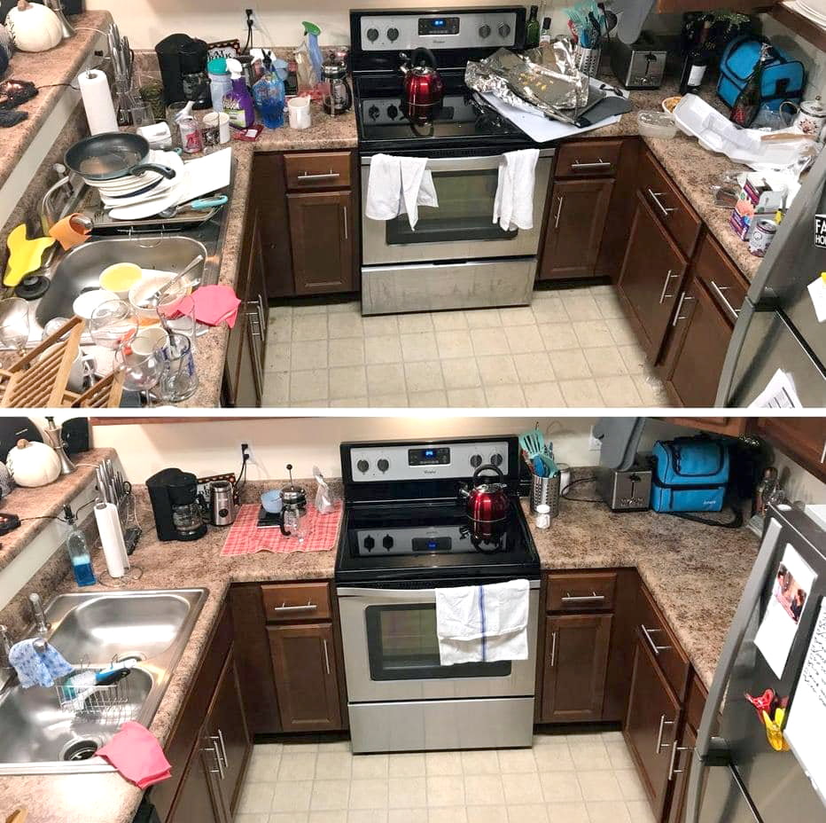 Typical post-cooked and hosted corner kitchen that has been cleaned up and looks like new.