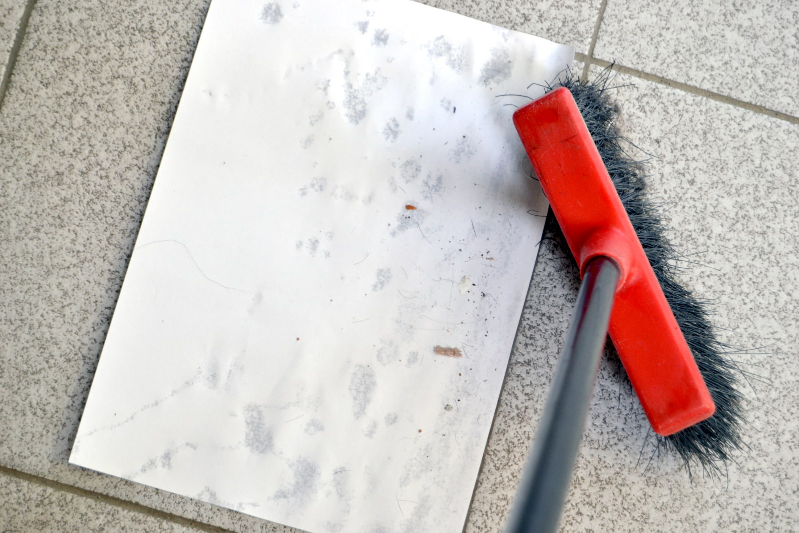 If you need to sweep off small debris from the floor, but there is no scoop at hand, plain paper for printing on a printer will help. The sheet moistened along the edge adheres tightly to the floor and allows you to sweep all the crumbs onto it. After all the small debris has been collected, the sheet just needs to be crumpled and discarded.
