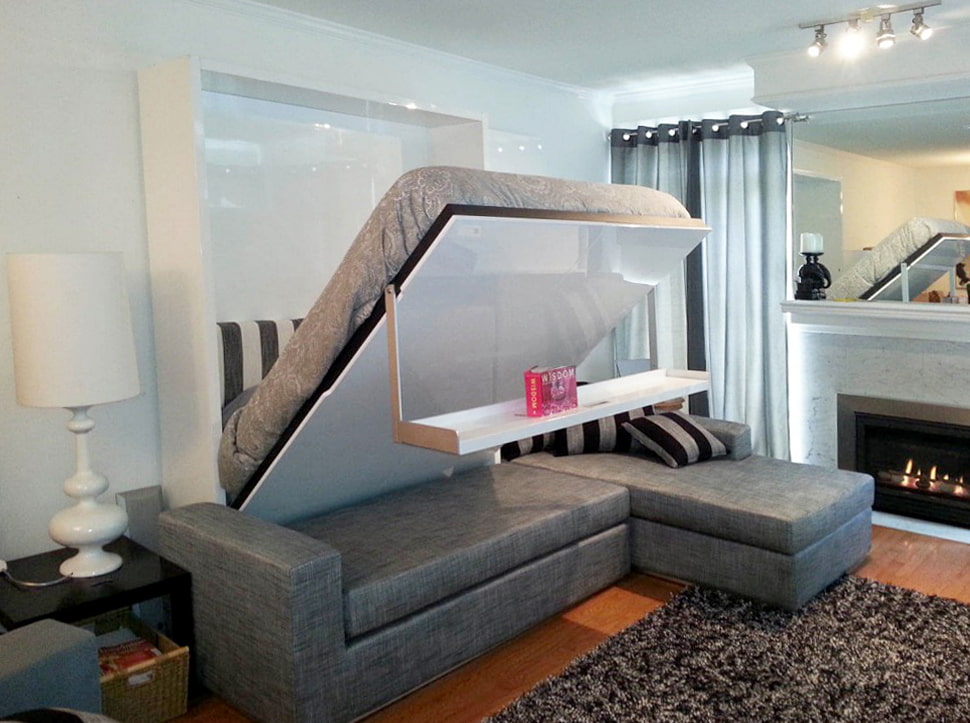 - Convertible sofa. Consists of a wardrobe with a shelf, a fold-out bed and a sofa. During the daytime, the bed is hidden in the closet.