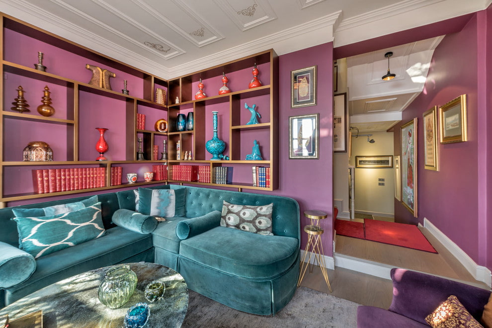 Much less common are corner models of lilac or purple: this type of upholstery gives the room individuality. The leading place for creating romantic interiors is occupied by furniture in pink colors.