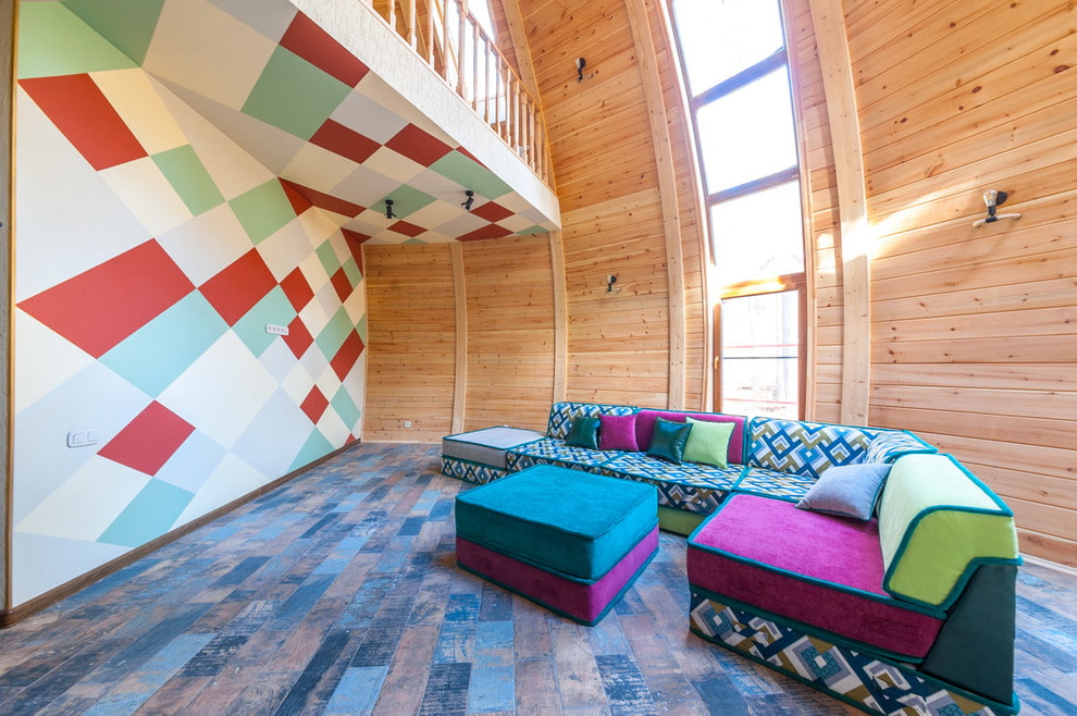 In the photo there is a country house with multi-colored frameless upholstered furniture from separate blocks.