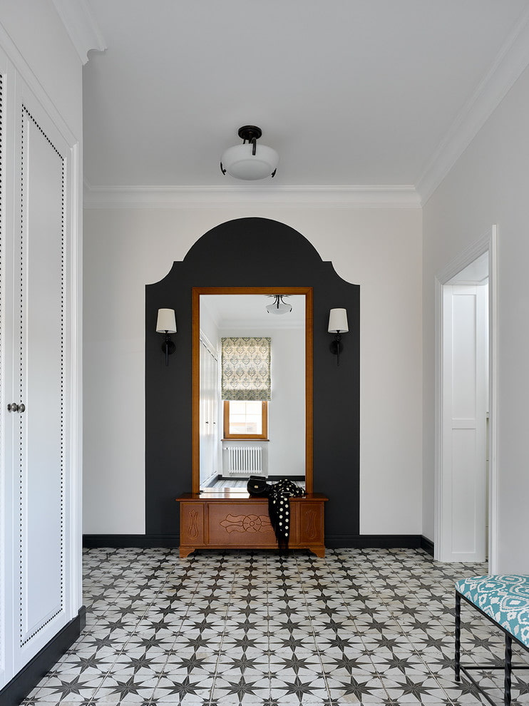 Disguise the empty space by choosing more "solid" pieces of furniture: an ottoman instead of an ottoman, a dark wardrobe of a complex shade, a large mirror in a carved frame. You can also turn the hall into a room by adding a small sofa, chest of drawers and decor.
