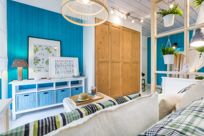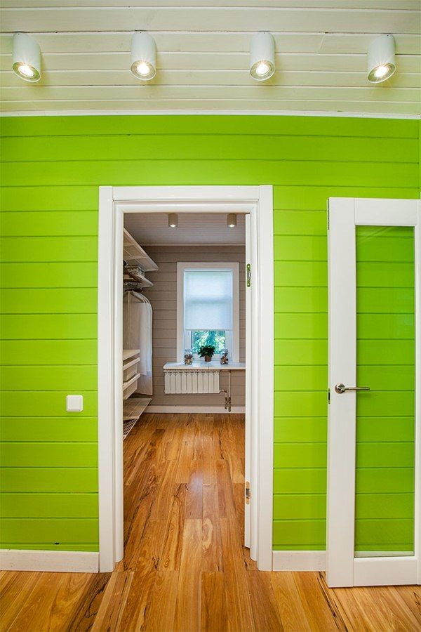 The color scheme depends on your preference: white lining and bright interior details or colored boards and neutral design.